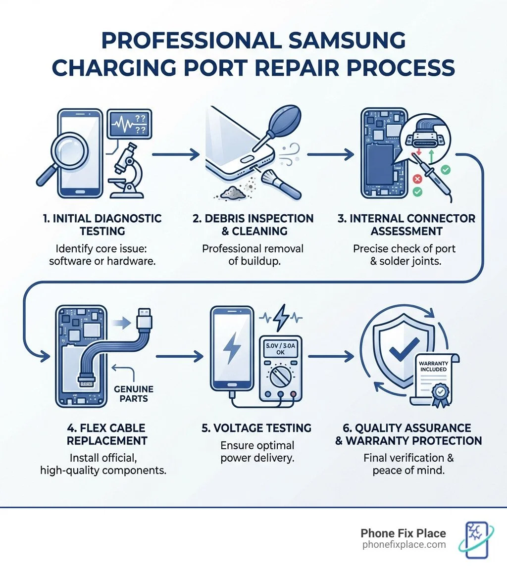 A Samsung charging port fix is essential when your device won't charge properly, shows intermittent connection, or requires you to hold the cable at a specific angle. Here's what you need to know: